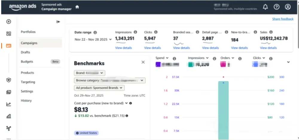 数据维度:支持按 Campaign、Ad group、Category 等维度筛选