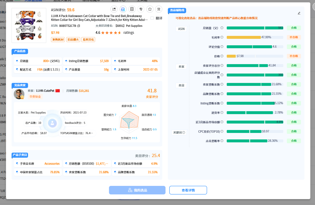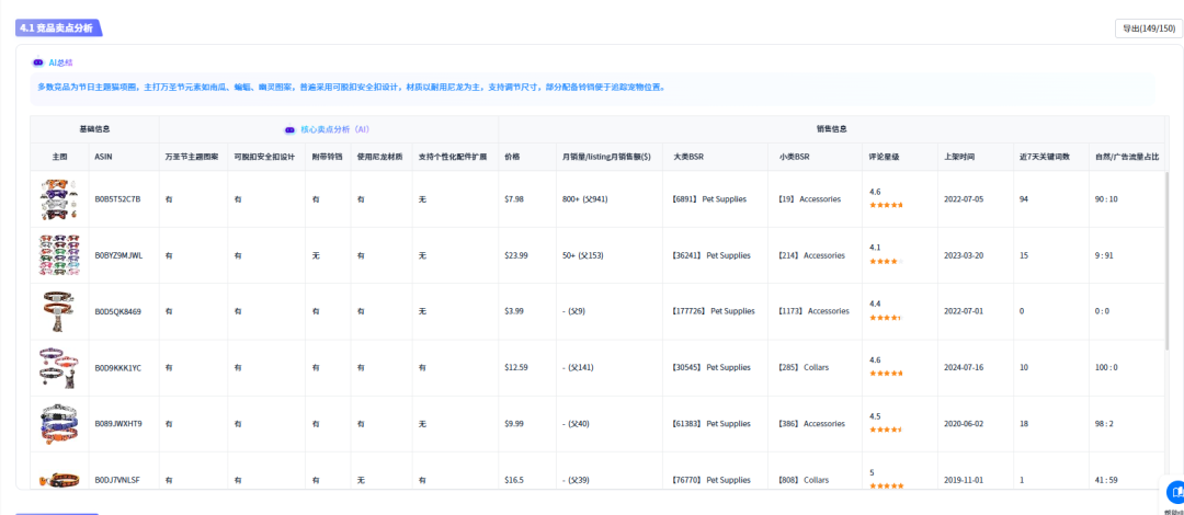 那么宠物装扮&节日元素结合的市场是否还有增量空间?卖家们可通过卖家穿海的【AI选品报告】对该ASIN进行深度调研。