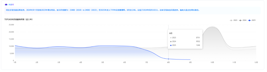 AI对细分市场的分析显示:市场整体呈现稳定增长态势,存在显著的季节性波动,尤其在返校季(8月)和圣诞促销期间(12月)销量大幅上升。历史销量稳步增长,在2023年末到2024年初出现激增,整体趋势健康且具有增长潜力。