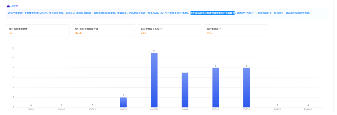 同细分市场下共有11个竞争对手,从卖家平均评分来看,整体市场竞争较为激烈且卖家实力普遍较强。