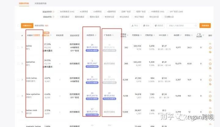 我们可以通过卖家精灵里面的流量分析功能来反查我们自身产品的关键词排名的变化,包括自然位置和广告位置下面的主流量词的变化:
