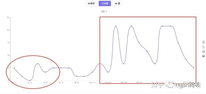通过数据可以观察到,我们出单时间有三个高峰期及两个低谷期。