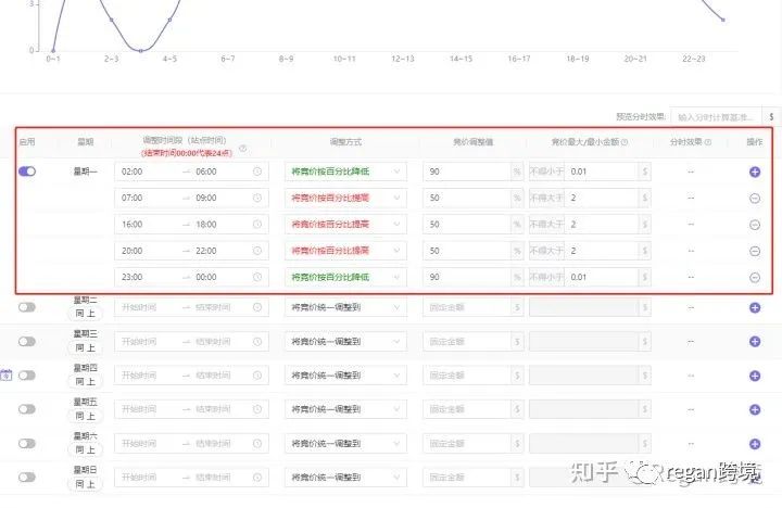 将我们的竞价在出单高峰期调整,可以有效将我们的产品在客户搜索的时候展示在第一页或者顶部的好位置,依次来帮助我们提高点击率和转化率。低谷期降低竞价可以有效帮我们过滤无效的点击率流量。