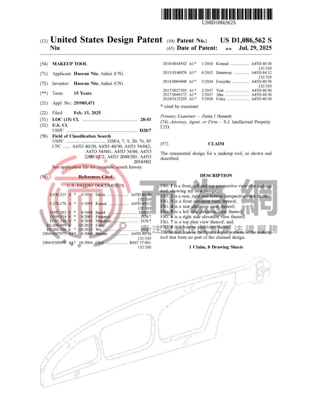 【侵权快讯】25-cv-10452 刚下证就维权专利+1!国人原告MAKEUP TOOL眼妆工具专利发案,速看避雷!
