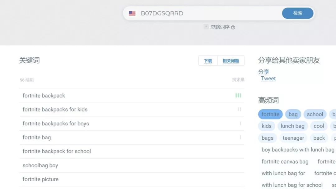 Sonar是我最常使用的工具,在上面可以用任意的ASIN查对手的关键词,还可以准确的查看关键词的热度,甚至精准到每一个词根的热度都有。表格还可以下载下来,方便做运营的你做深度分析。