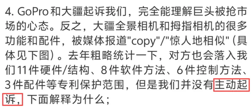 他先自谦“小公司资源有限”,理解巨头被抢市场的心态,接着透露刚花1000多万美金打赢了与GoPro的官司,这次心态同理。针对“隐藏发明人”的争议,他解释这是为了“延迟技术人员被猎头盯上”,并非针对大疆。