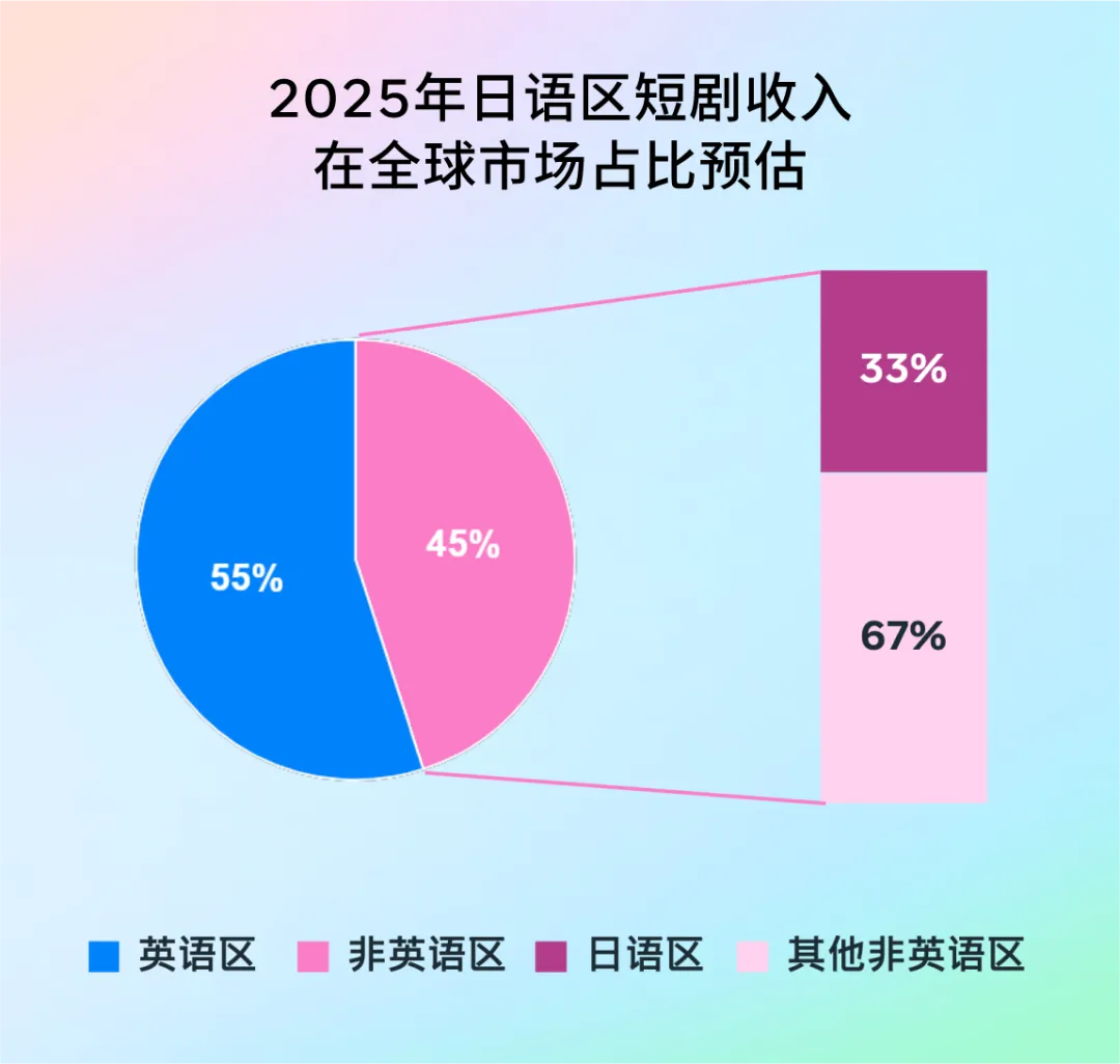 2025年,日本短剧市场规模达4.8亿美元,在非英语区收入占比超过1/3,已成为该区最核心的短剧市场;而到2026年,这个数字有望翻倍,突破10亿美元大关【5】!