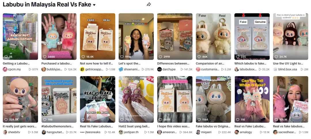 业内所称的“祖国版Labubu”主要以不足正版三分之一的价格吸引消费者,目标客群直指因正版溢价过高或抢购困难而望而却步的人群。有趣的是,部分产品明显存在涂装瑕疵、版型走样等问题,但海外消费者一边在“打假”,一边却依旧热情不减,被戏称为“Lafufu”的仿冒品们甚至在社交平台强势“出道”。