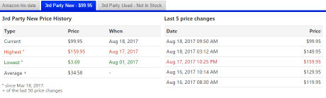 6月28日(CamelCamelCamel所能看到的最早日期)售价9美元,7月13日跌至7.49美元,今天攀升至历史新高44.95美元。