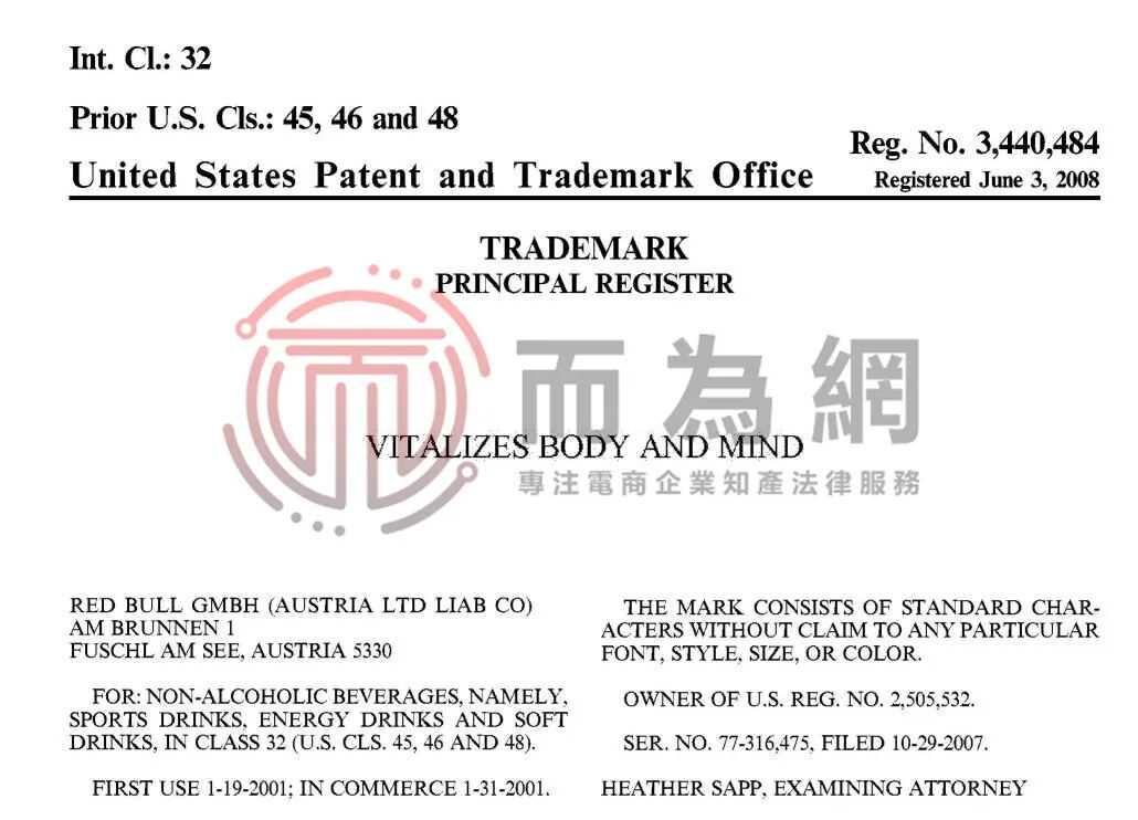 原告Red Bull GmbH是一家来自奥地利的跨国企业,由迪特里希·马特希茨 (Dietrich Mateschitz)于1987年创立是全球能量饮料的开创者和市场领导者。