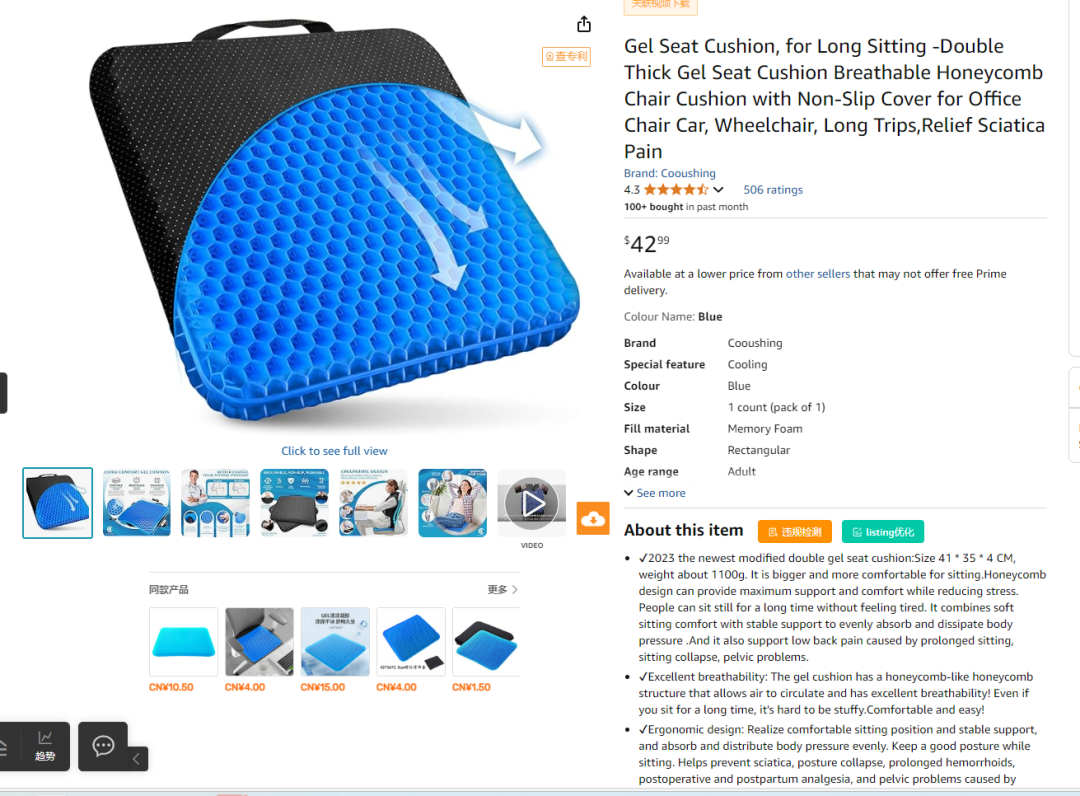 亚马逊选品推荐:蜂窝汽车坐垫