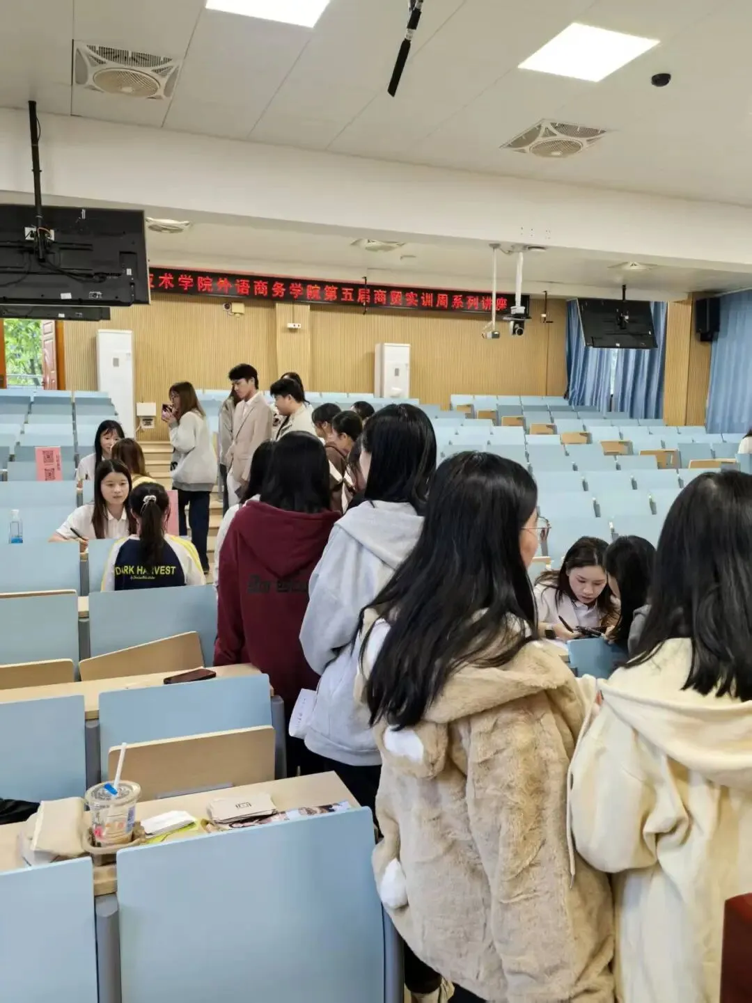 红姐耐心细致地逐一解答,交流内容干货满满,令现场学子收获颇丰。此次宣讲不仅帮助同学们深度洞察跨境行业趋势与人才需求标准,更让他们进一步明确了自身学习重点与职业规划方向。