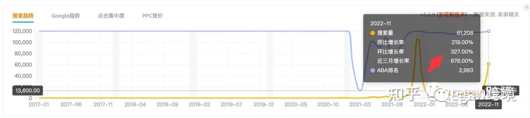 搜索量直接飙升到了240000,这个搜索热度在整个平台上都属于非常大的词汇。以此可以评判出在节假日来临时产品的销量增长情况。