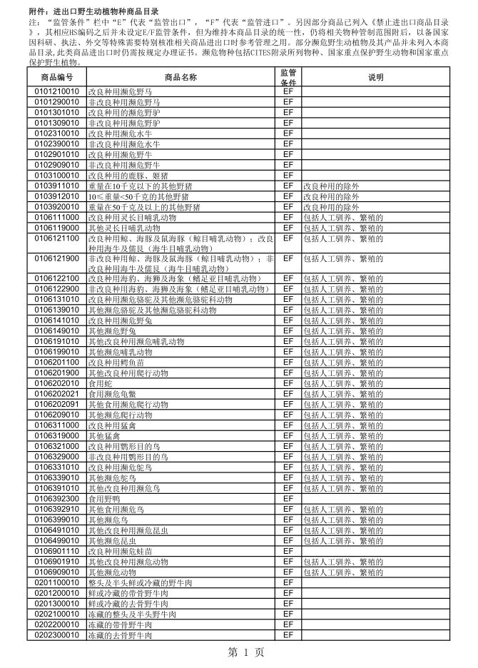第三条:“依法进出口野生动植物及其产品的,实行野生动植物进出口证书管理。野生动植物进出口证书包括允许进出口证明书和物种证明。进出口列入《进出口野生动植物种商品目录》(以下简称商品目录)中公约限制进出口的濒危野生动植物及其产品、出口列入商品目录中国家重点保护的野生动植物及其产品的,实行允许进出口证明书管理。进出口列入前款商品目录中的其他野生动植物及其产品的,实行物种证明管理。商品目录由中华人民共和国濒危物种进出口管理办公室(以下简称国家濒管办)和海关总署共同制定、调整并公布。”