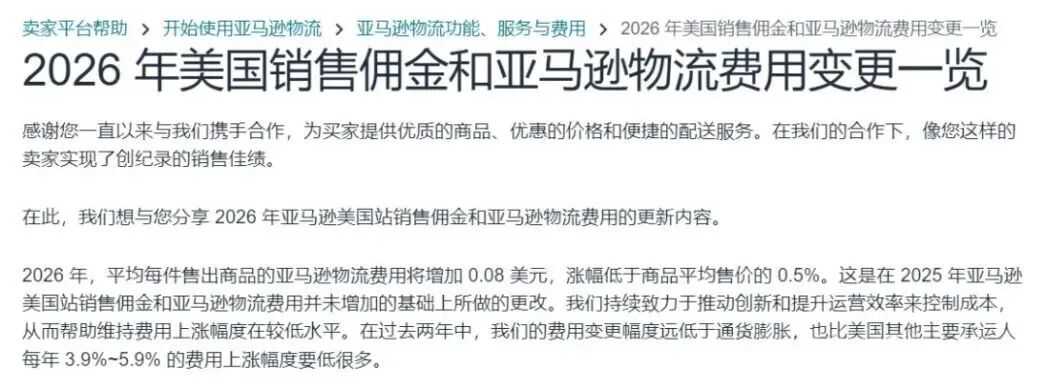 先看“好消息”:亚马逊本轮调整中,商品销售佣金维持不变,这意味着卖家的毛利结构暂时不会受到直接冲击。