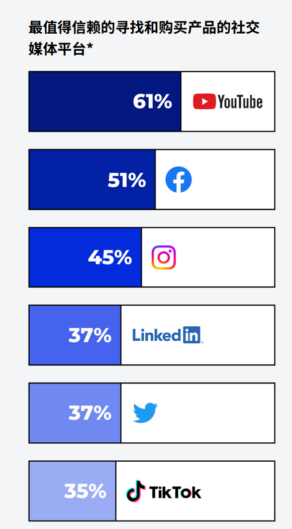我们的消费者趋势报告表明,消费者对Youtube的信任度最高,其次是Facebook和Instagram,卖家可以优先考虑在这三个平台开展营销活动。
