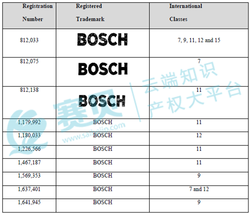 品牌原告:Robert Bosch Gmbh and Robert Bosch LLC