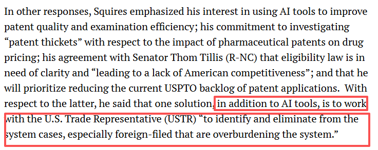 积压处理:优先减 USPTO 申请积压,联合 USTR 清理外国过度负担案件,主要针对部分国外提交的专利申请可能存在 “非核心创新”“重复申请” , “不符合美国专利授权标准” 的情况