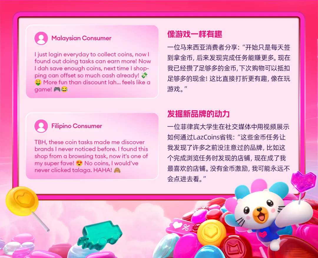 LazCoins玩法在东南亚各国消费者中引起了热烈反响,社交媒体上随处可见用户分享自己的“金币经验”。