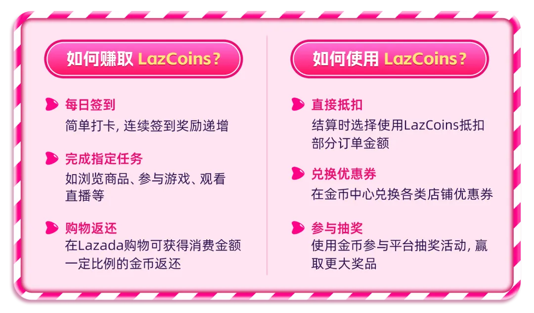 对消费者而言,LazCoins是Lazada平台的一种虚拟金币奖励,可直接用于购物抵扣现金,真正实现“金币变钱花”。