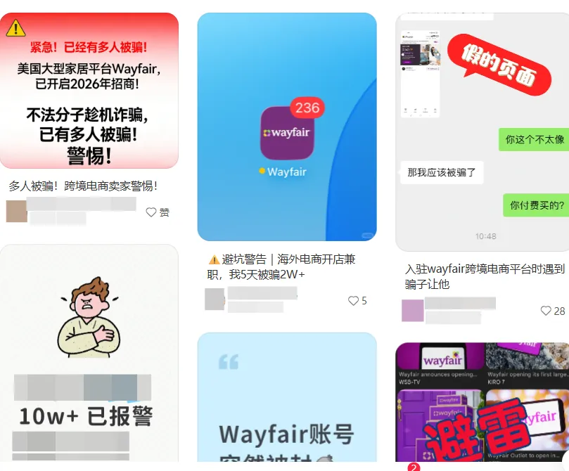 作为北美最大的线上家居电商平台,Wayfair是中国家居、工贸一体卖家布局北美市场的核心渠道,旺盛的入驻需求被诈骗团伙精准盯上。