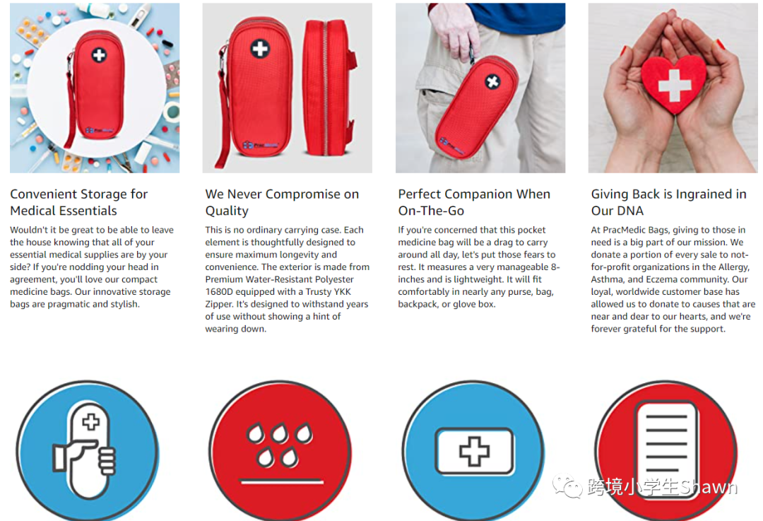 这部分的编写重点在于,在最短的时间将你产品最重要的特点凸显出来,呈现到消费者面前