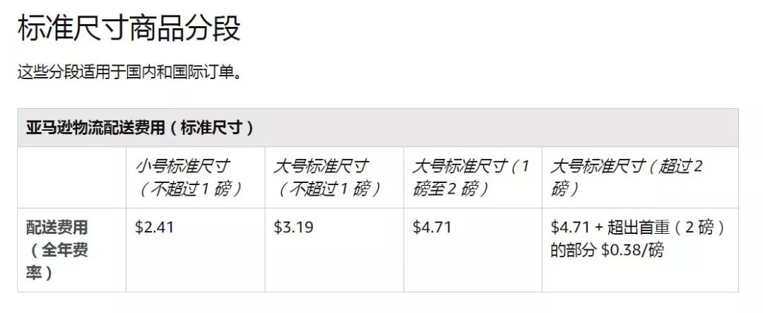 FBA运费3.12$这个就比较好理解了,就是从亚马逊仓库发给买家,这里是固定的价格,按商品尺寸收费,商品不同选用标准也不同,体积重量和实际重量选比较重的那一个四舍五入收费,具体标准看下图: