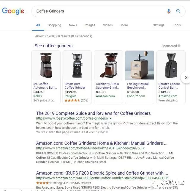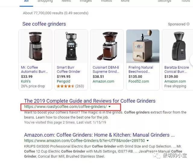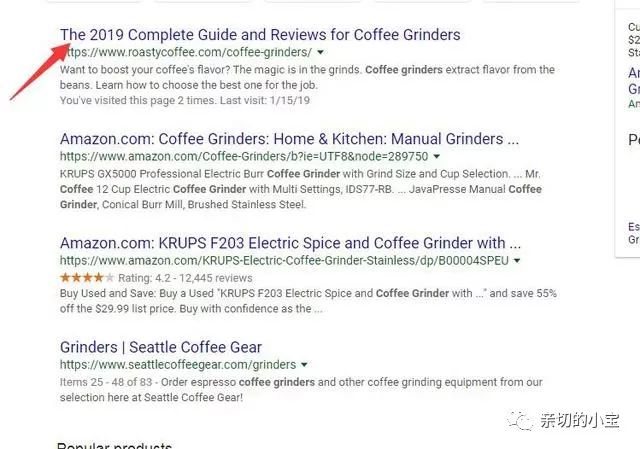 在谷歌中输入行业关键词,比如:Coffee Grinders 咖啡研磨器