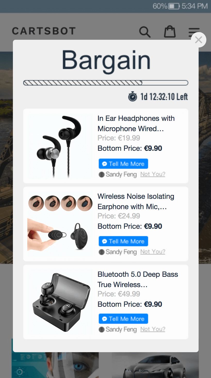 社交电商在国内愈加火爆的今天;BotHub放眼全球,紧跟大势。继落地了Shopify购物车召回功能后,今天要给大家带来这款通过FacebookMessenger实现shopify砍价功能的产品,分享出去让好友帮你砍价啦。仅需3分钟的配置就能带起爆款是不是很心动,快来和小Bo一起看一看!