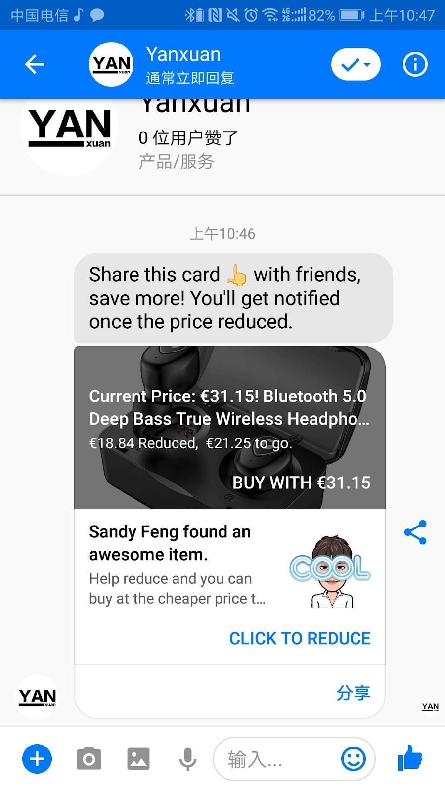 2 顾客点击任意一个 “Tell me more” ,立即收到Messenger 消息,已经砍了巨额