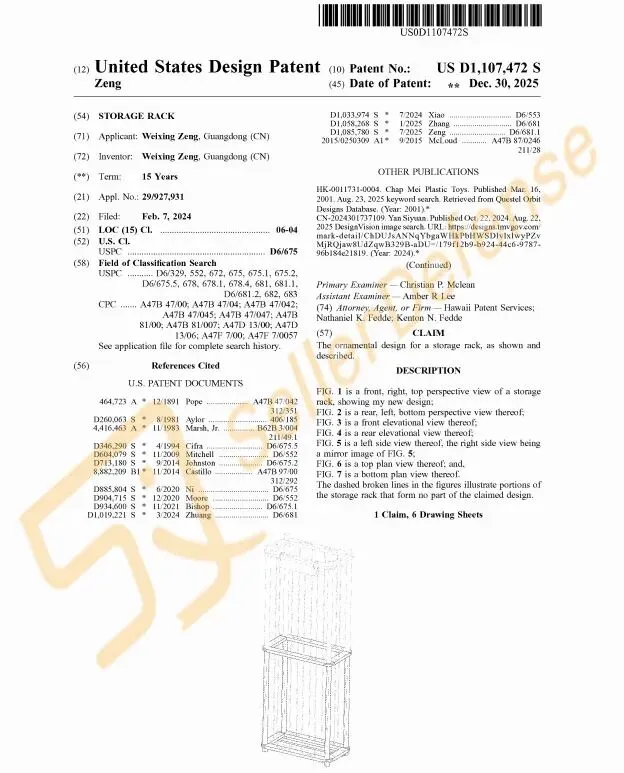 本案原告为国人卖家,主要销售存储架类产品,小编查询到原告名下有以下专利。专利产品是两款毛绒玩具收纳架,请相关卖家注意排查避雷!