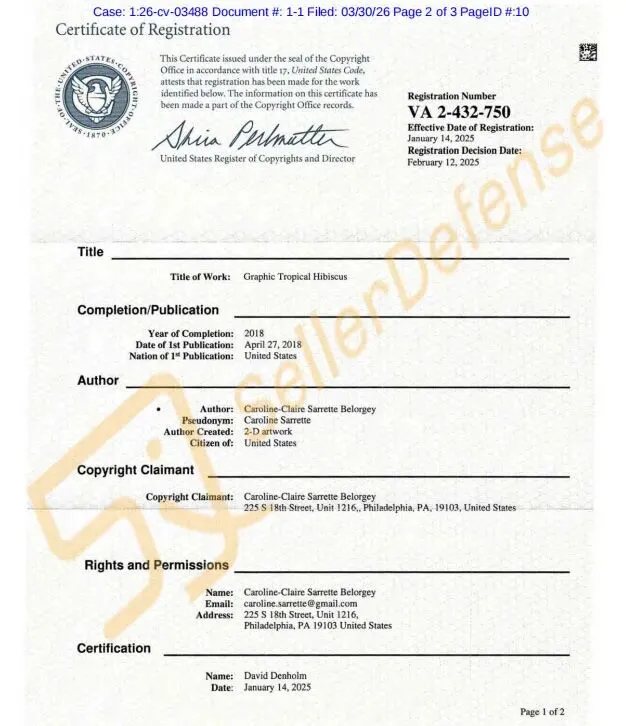 原告品牌:Caroline-Claire Sarrette Belorgey 版权画