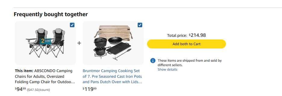 这两个模块是亚马逊算法根据用户历史购买行为自动生成的“需求延伸场”。举个例子:用户买了露营椅,系统会自动推荐露营帐篷、露营餐具——这些关联商品的点击率和转化率,往往比搜索结果页的商品高30%以上(因为用户已有明确需求,只是需要“补全装备”)。