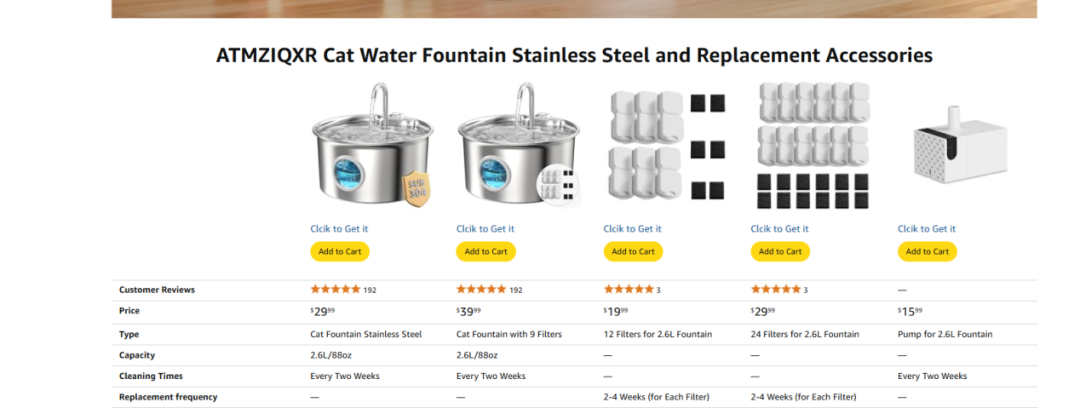 使用高级A+的对比模板设置,可以展示自己店铺的同类或升级产品设置捆绑产品,做关联营销,有对比的参数差异让买家更容易选择合适的产品,且降低店铺跳出率。