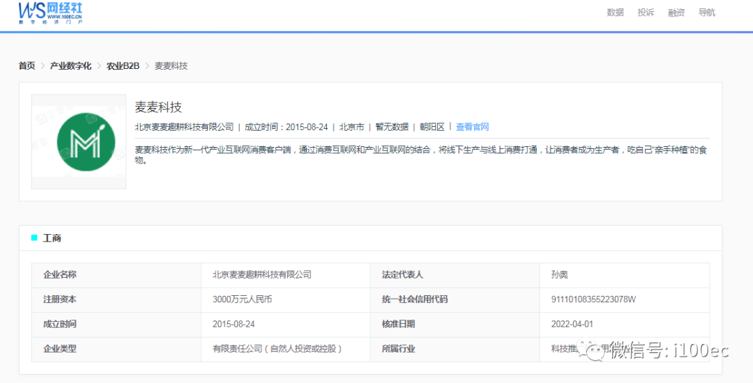 据网经社企业库(COP.100EC.CN)显示,麦麦科技成立于2015年8月,法定代表人孙奥,企业名称为北京麦麦趣耕科技有限公司。麦麦科技作为新一代产业互联网消费客户端,通过消费互联网和产业互联网的结合,将线下生产与线上消费打通,让消费者成为生产者,吃自己“亲手种植“的食物。