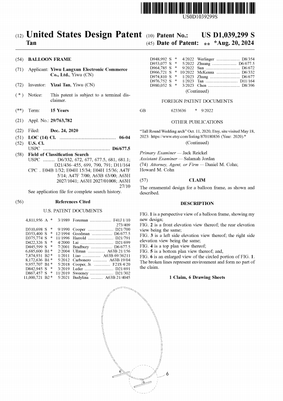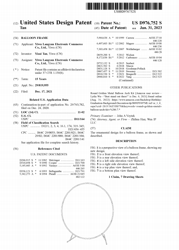 原告Yiwu Langxun Electronic Commerce Co., LTD是浙江义乌的一家公司,成立于2015年。此次维权的产品气球拱门架,可用于婚礼/生日派对/男女宝宝派对/开店典礼/毕业派对装饰/感恩节/母亲节/情人节/圣诞节和新年装饰/商务庆典/派对等。 易于拆卸,适合不同用途,满足您的需求。