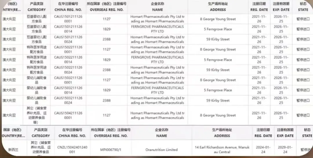 进口监管再收紧!多家澳新营养品工厂被暂停在华进口资质