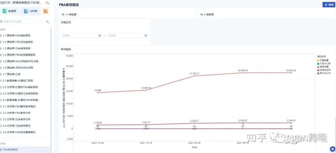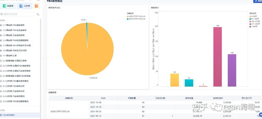 这是库存板块,可以将库存和目前货值比例,以及分析库存的趋势。可以帮助我们有效把控产品的库存,避免产生冗余的情况。