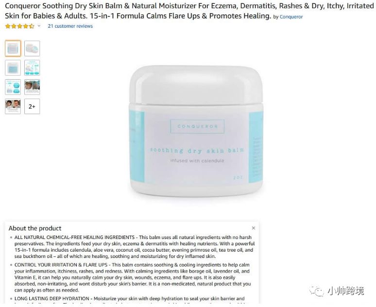 该listing的第3个产品要点尤其戳中D的需要,是这么写的“NATURE’S MOST EFFECTIVE HEALING & SOOTHING INGREDIENTS…”(采用大自然最有效的治疗和舒缓成分……)。