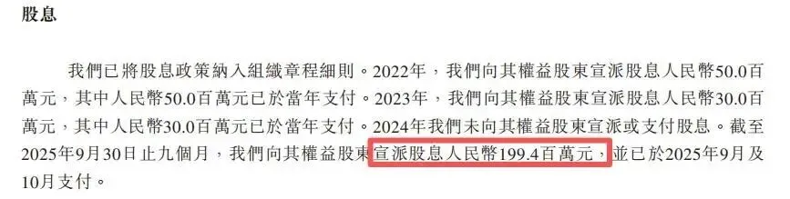 2025年前三季度,公司向股东宣派1.99亿元股息,远超当期1.06亿元的净利润,分红比例高达187.74%。