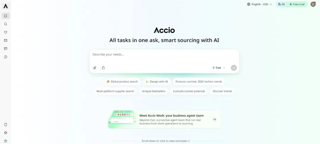 值得卖家注意的是:现在Accio新人注册会送两周的体验,还有免费版的,一天可以使用Accio执行3个任务。