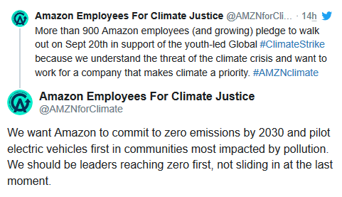 “亚马逊是全球最具创新力的公司之一,”该组织表示,“我们为此感到自豪。但面对气候危机,真正的领导者应该是最先实现零排放的企业。”