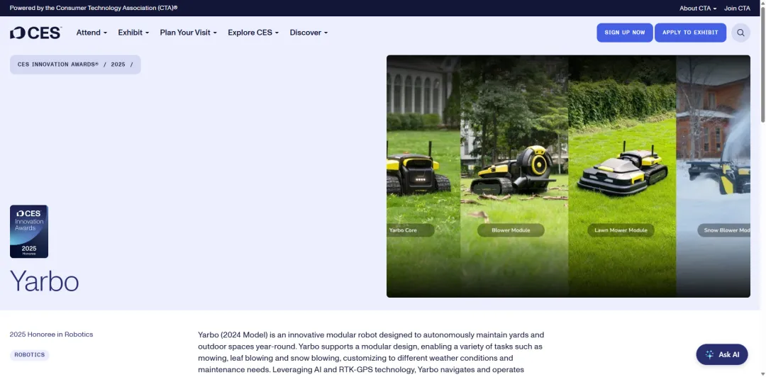 在庭院设备领域,北美、欧洲传统品牌(如Toro、Husqvarna)长期占据主导,中国品牌多以“性价比”入局。但Yarbo凭借400余项专利(其中国际专利近百项)、全球首款室外高低温无线充电板等技术突破,斩获CES Innovation Awards、iF DESIGN AWARD等国际奖项,用“技术溢价”替代“价格内卷”,重塑了海外市场对“中国智造”的认知。