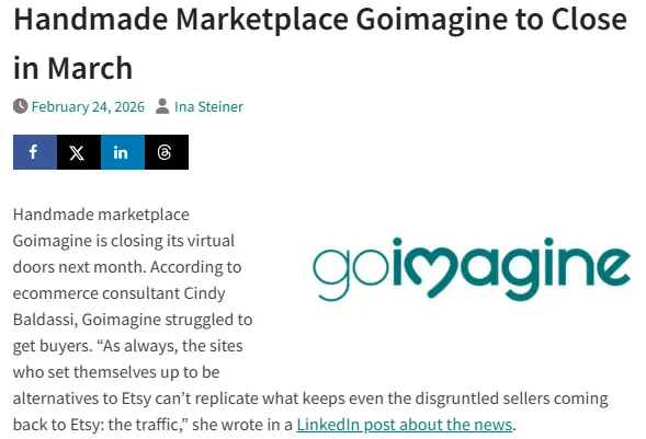 分析人士认为,其关闭凸显了美国在线手工艺市场的高度集中化趋势,而这一趋势在整个跨境电商行业也同样明显——巨头主导的格局下,中小垂直平台的突围难度极大。