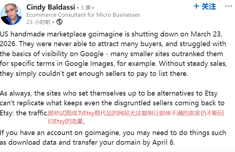 近日,成立于2020年的美国电商交易平台Goimagine,正式宣布将于2026年3月23日全面关停。