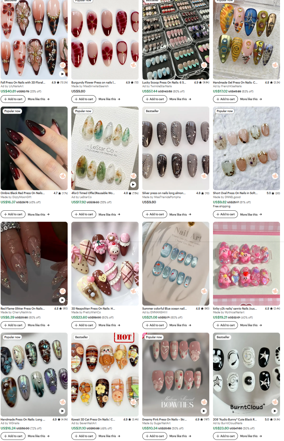 感觉ETSY平台上的美甲与AMZ的不一样,