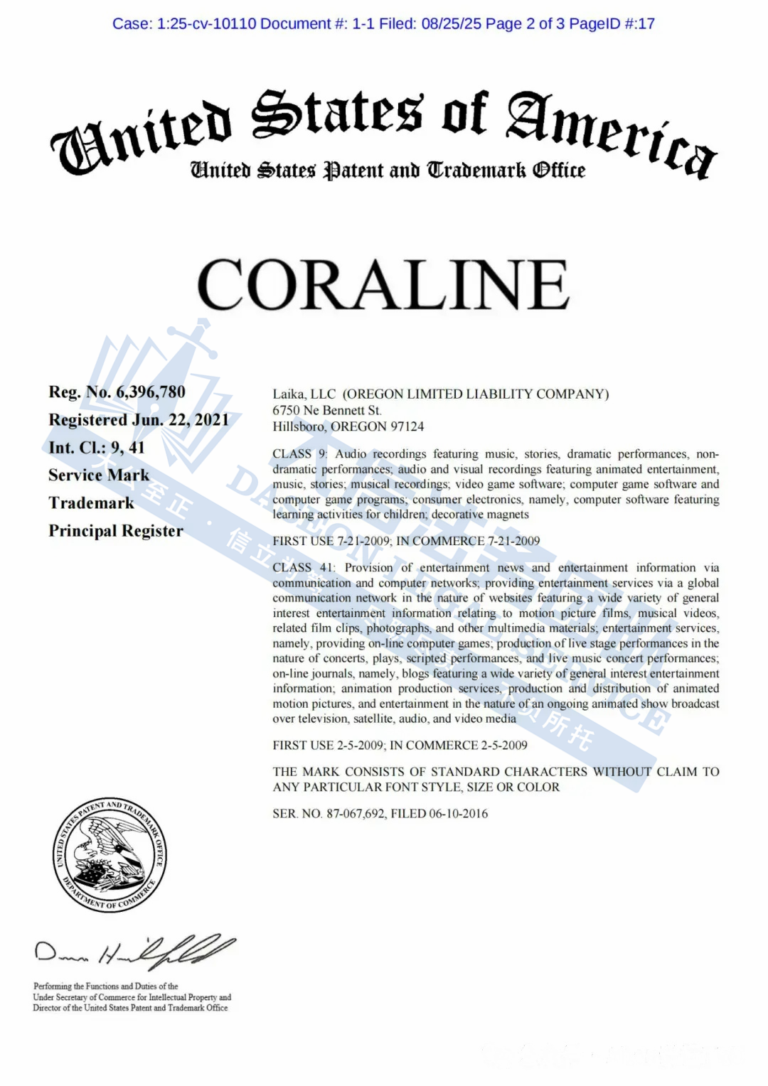此案为商标+版权维权,涉及Coraline商标以及Coraline角色版权展开,涉案版权号为:VA 2-033-018、VA 2-033-016和VA 2-033-019,以下是涉及商标版权的具体信息,未经授权不得擅自使用,侵权风险极高!跨境卖家尽快检索下架,否则会有TRO侵权风险!