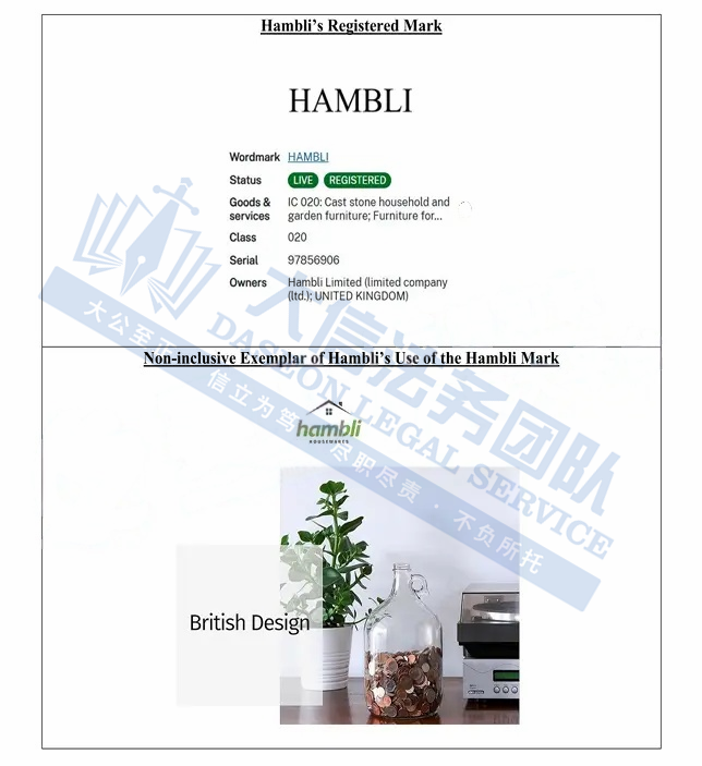 原告是一家位于英国的私人有限责任公司,该公司围绕“Hambli”品牌打造的产品主打“英国设计(British Design)”理念,以“Joyful Living Made Simple(简约愉悦生活)”为核心定位,将英国风格设计、功能性与高效性相融合,产品可适用于家庭生活空间及办公场景,致力于为消费者提升空间使用体验。