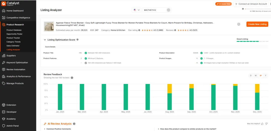 面对Rufus这样的算法变革,很多卖家会陷入“不知道从何下手”的困境:评论数据太多难以提炼、Listing内容不知道怎么优化才符合要求、视觉素材不知道如何匹配用户意图……这正是Jungle Scout的核心价值所在。