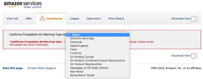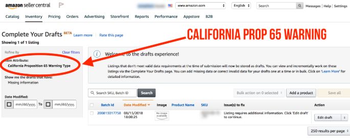 3、如果卖家没有在“Complete Your Drafts”页面上看到Prop 65警告选项,则很可能没有类目受到影响。